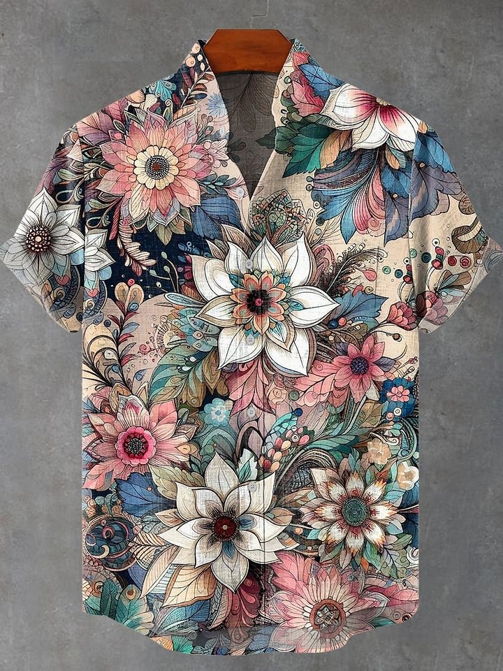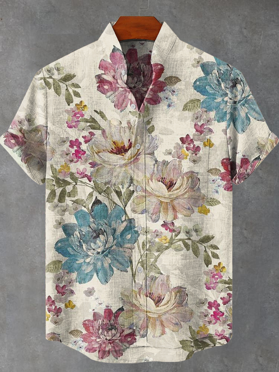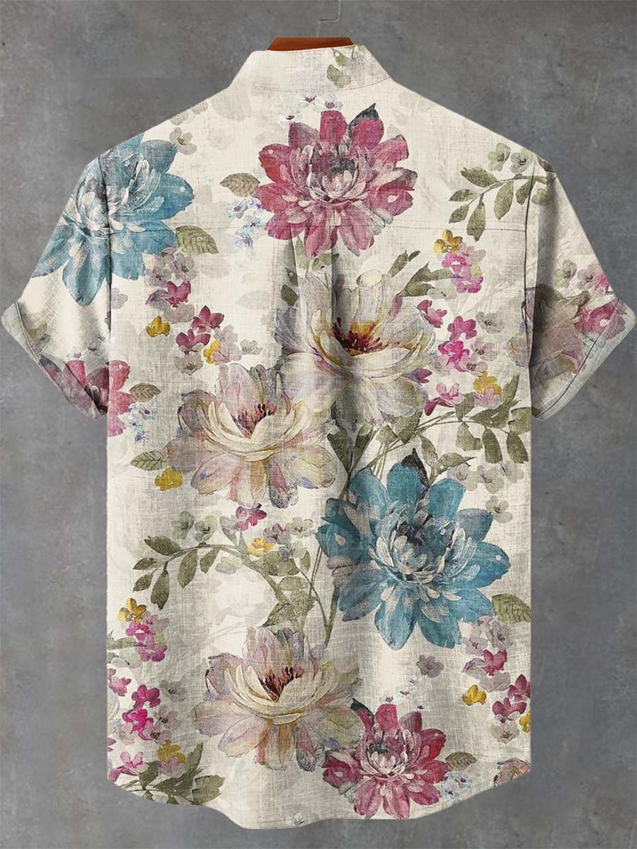 Vintage Floral Print Casual 100% Cotton Shirt