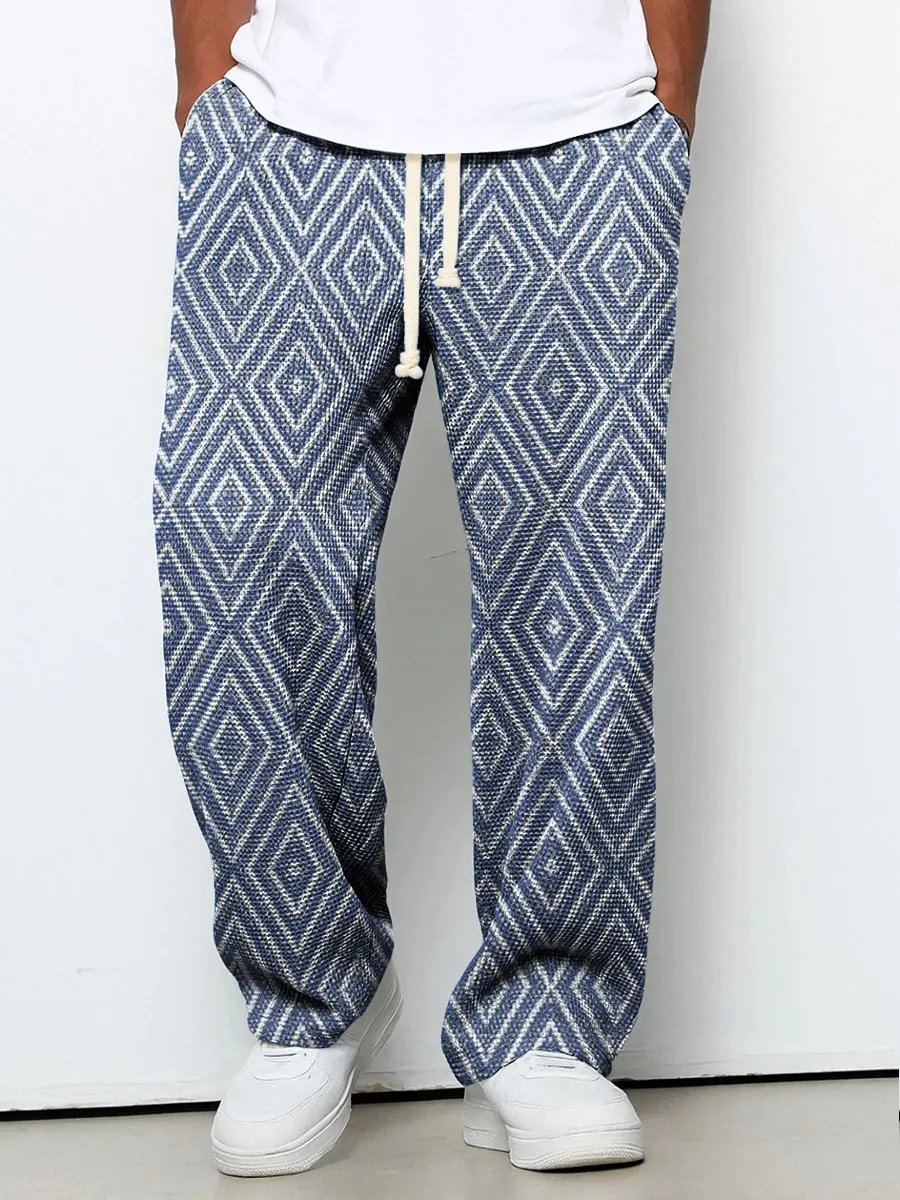 Men's Blue Diamond Geometric Art Print Casual Suit Pants