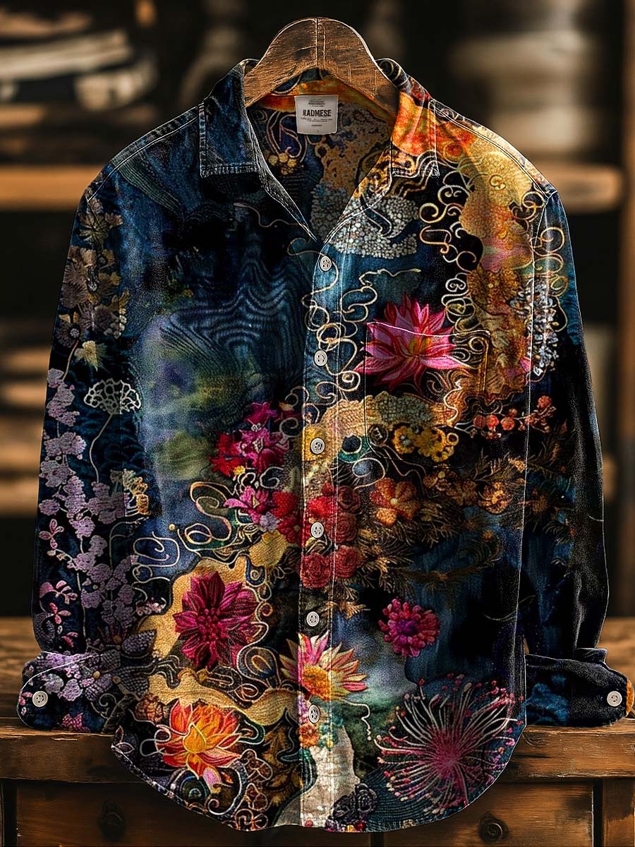 Vintage Floral Print 100% Cotton Long Sleeve Shirt