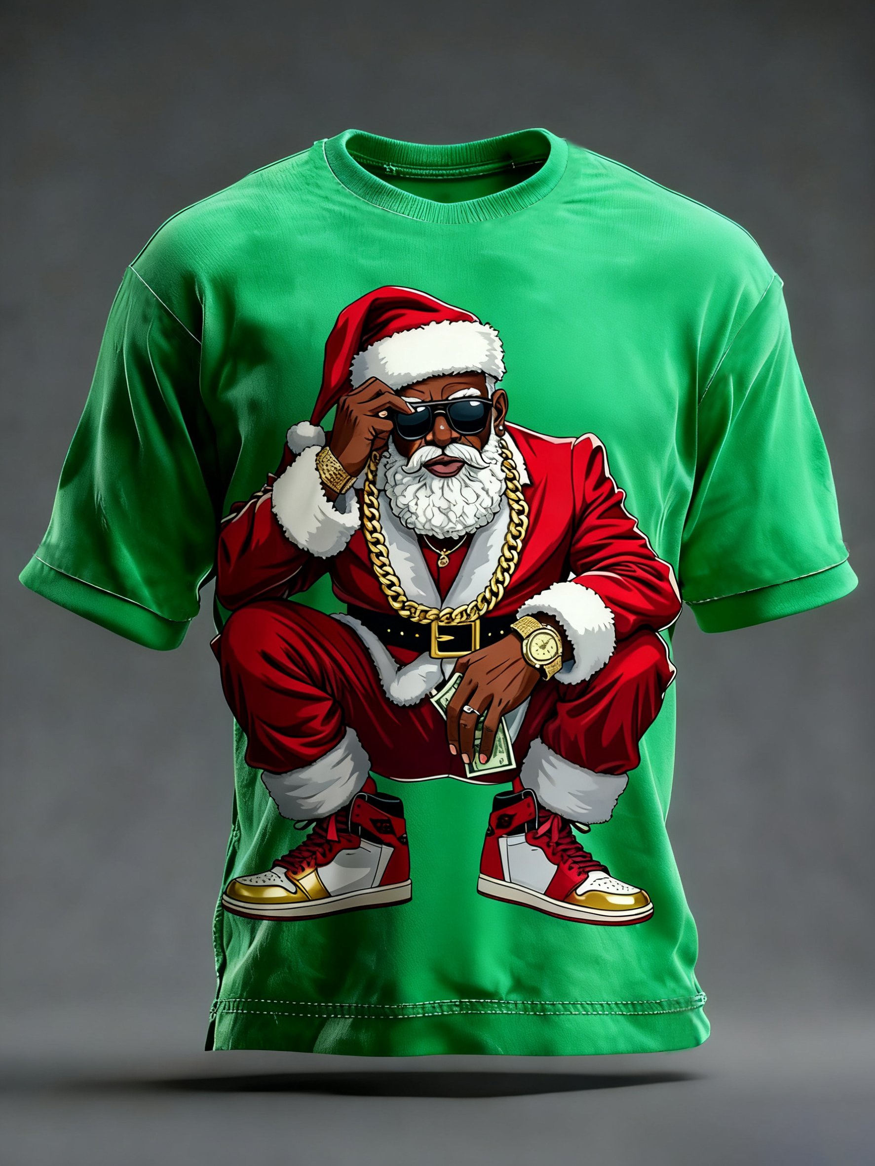 Men's African American Santa Claus Print Short-Sleeve Shirt