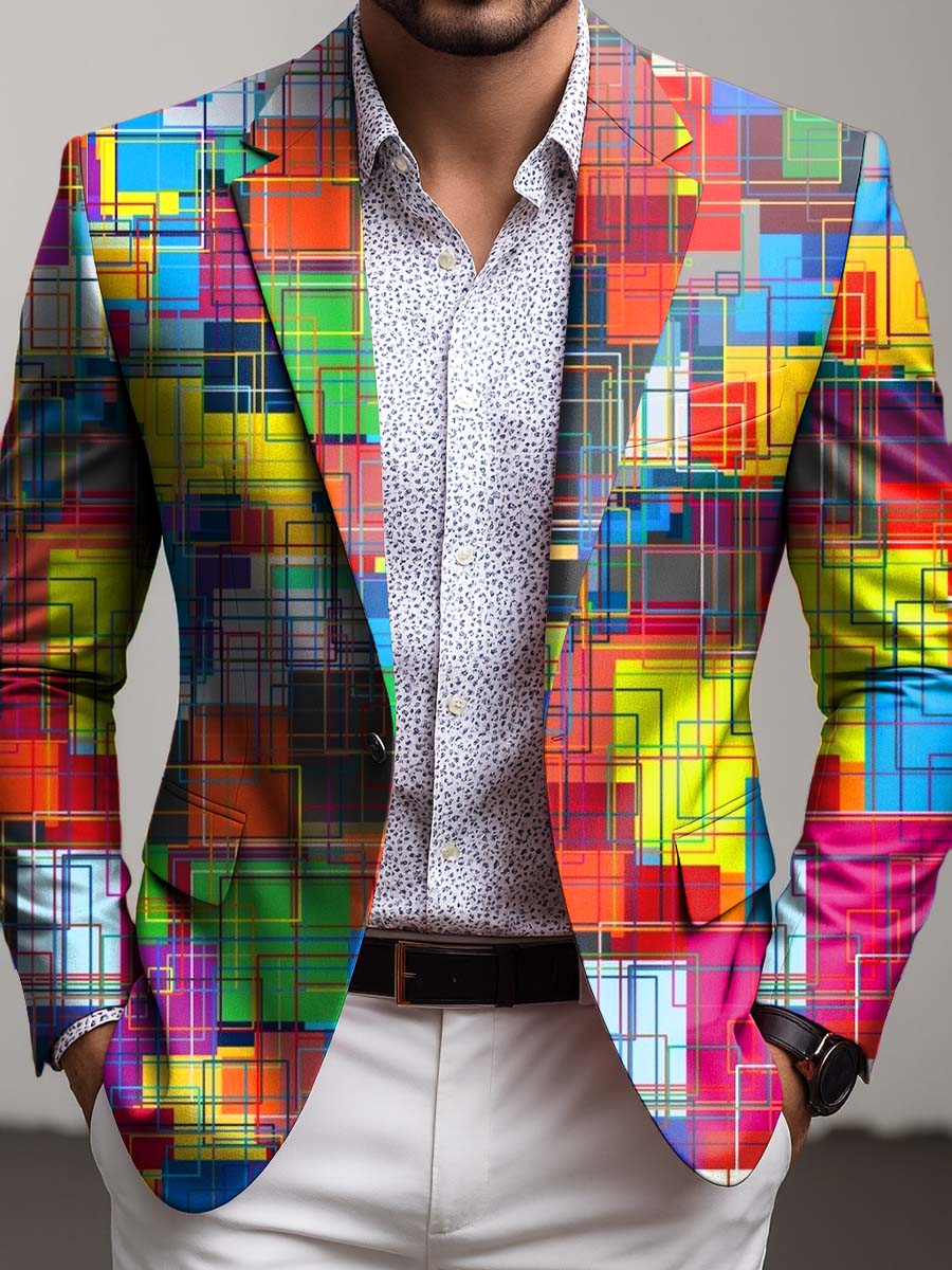 Men's Geometry Color Gradient Art Print Casual Suit Pants