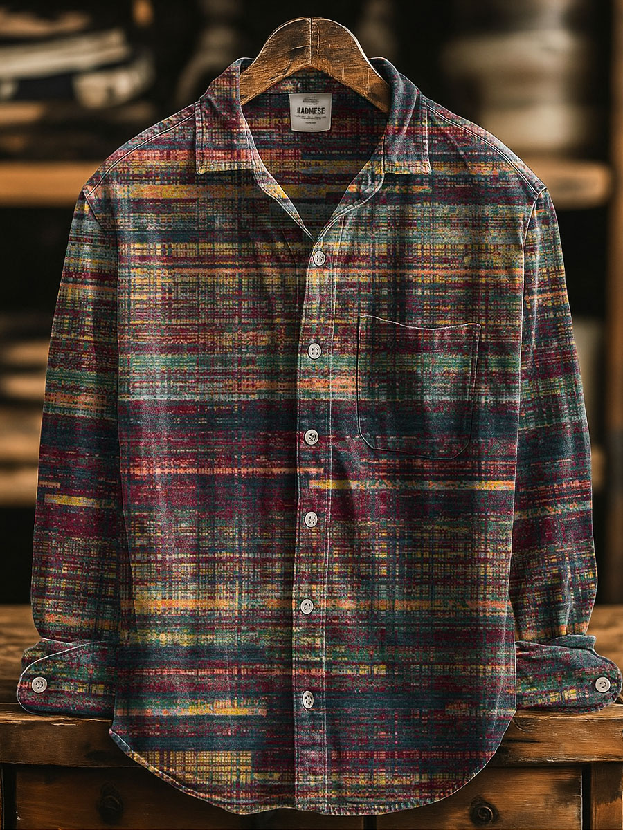 Mottled Artistic Rainbow Colors Vintage Stripe Print 100% Cotton Long Sleeve Shirt