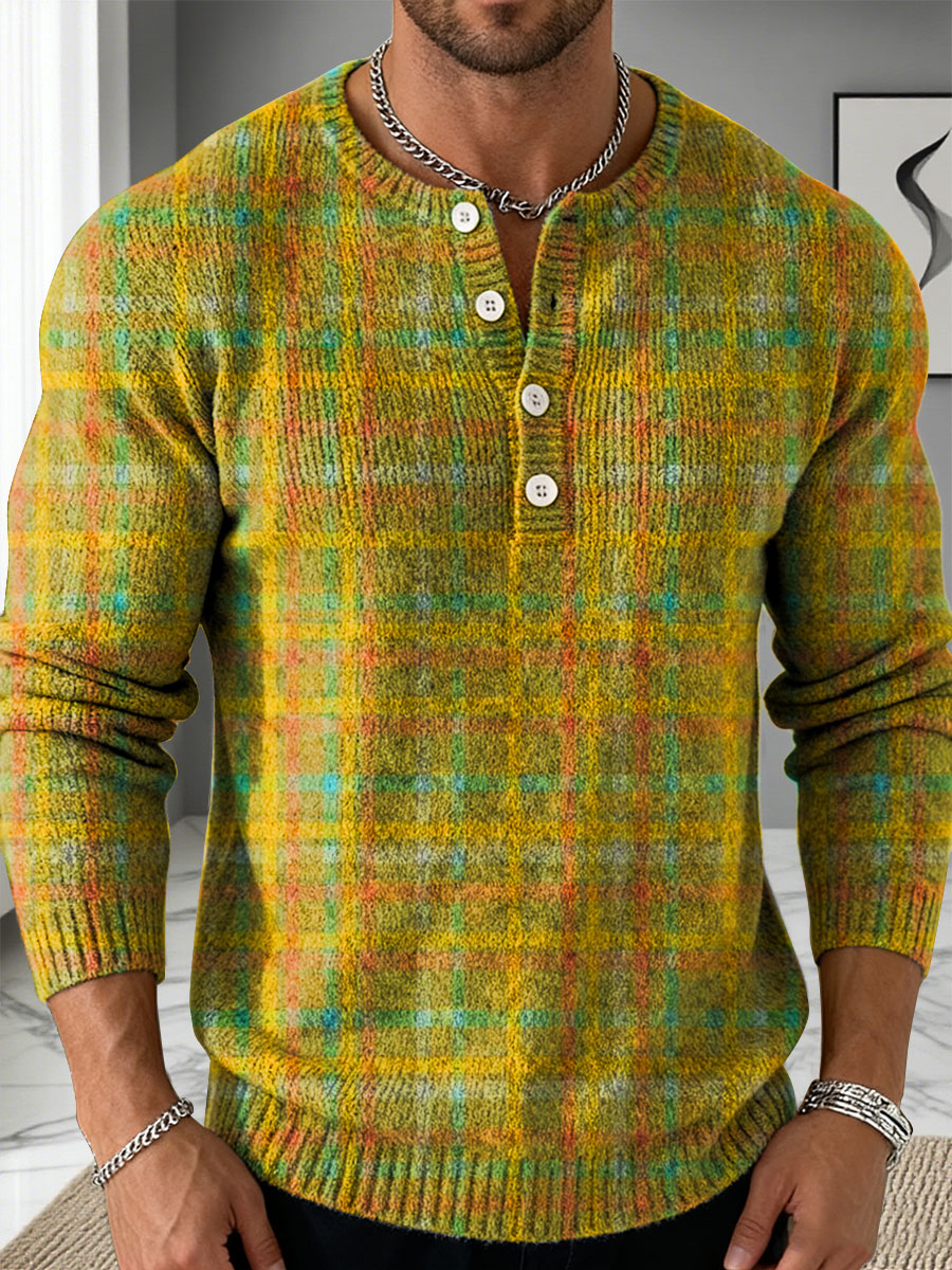 Men's Vintage Geometry Colors Plaids Pattern Art Print Buttoned Cardigan Sweater