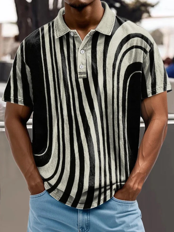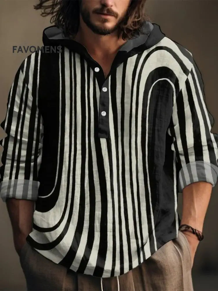 Black and White Ripples Vintage Print Casual 100% Cotton Shirt