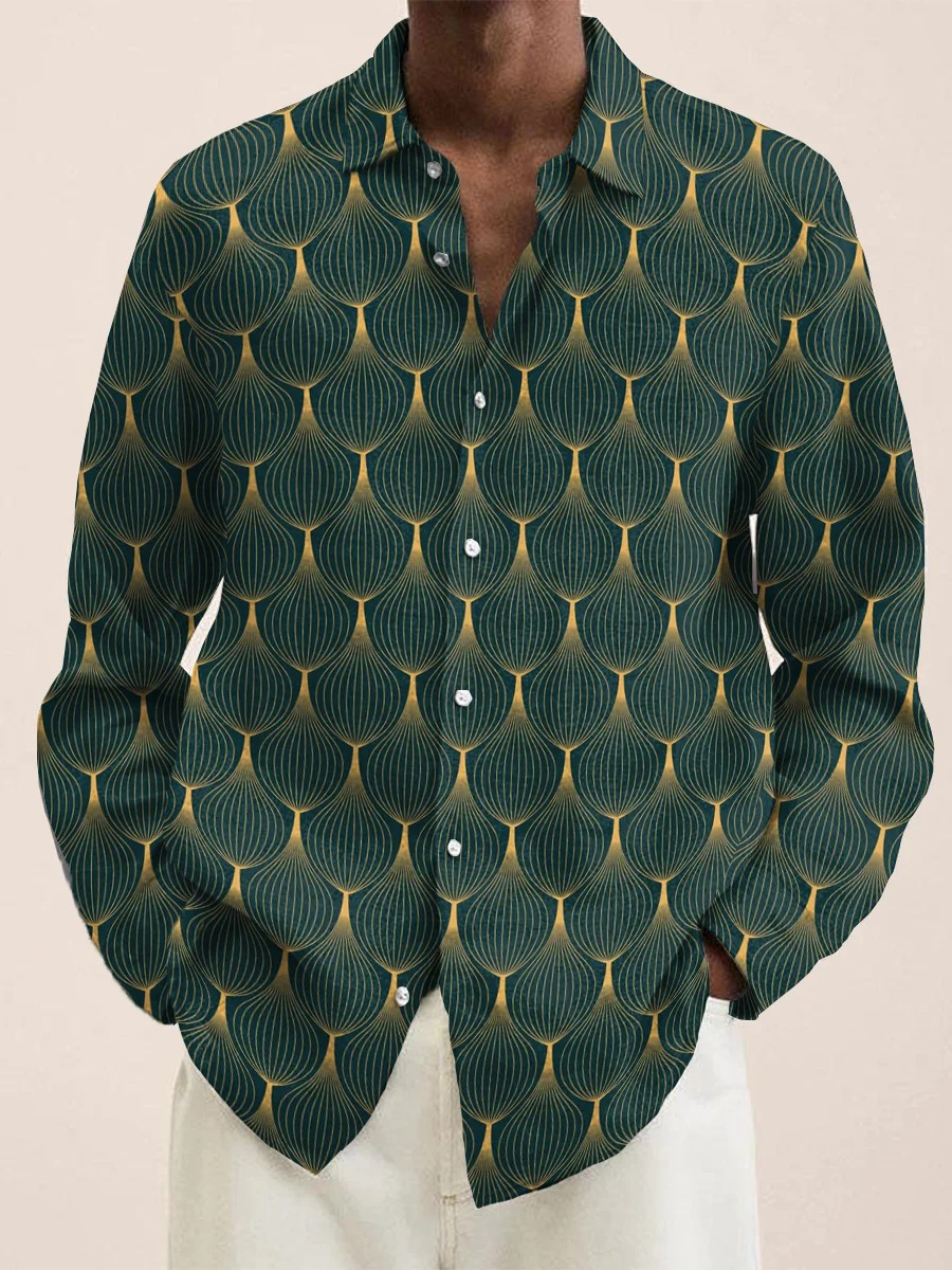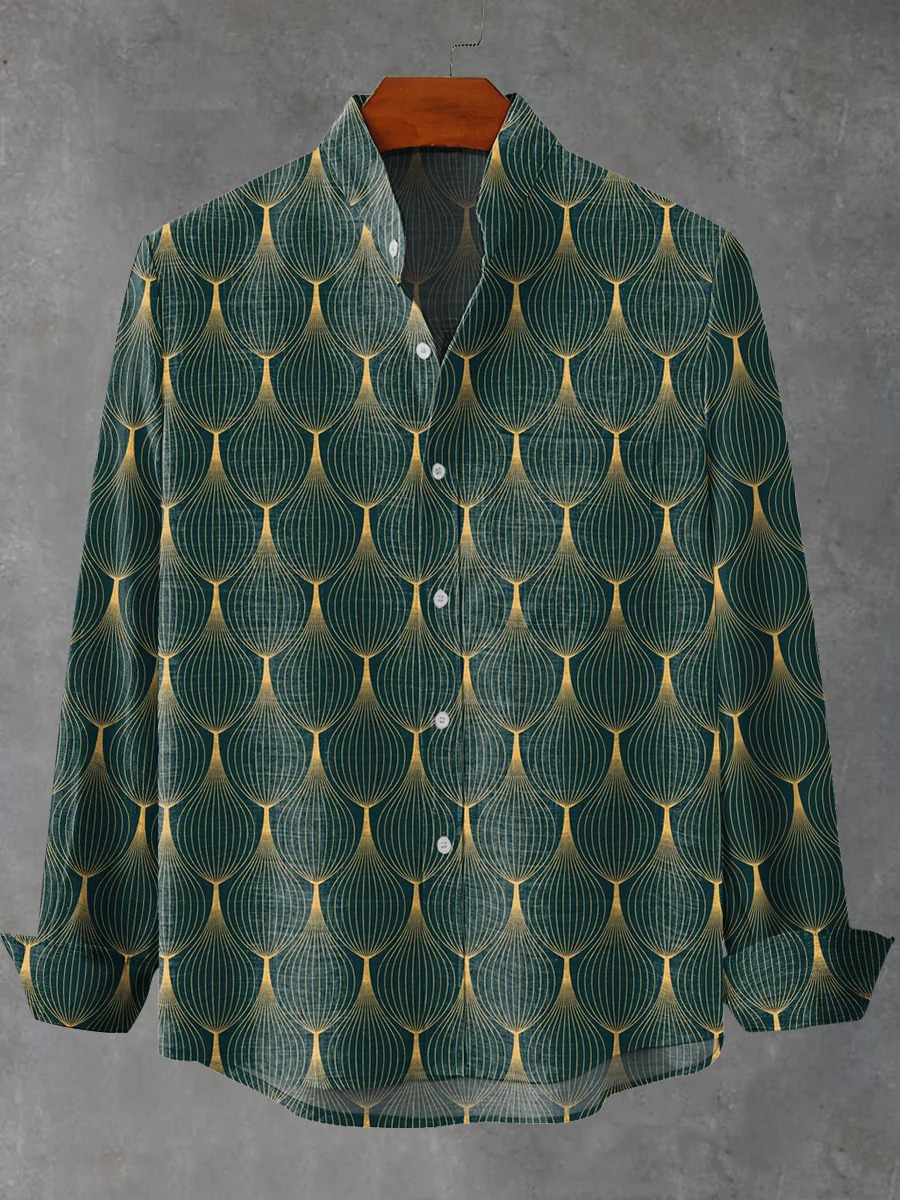 Geometric Line Decorative Pattern Casual 100% Cotton Shirt