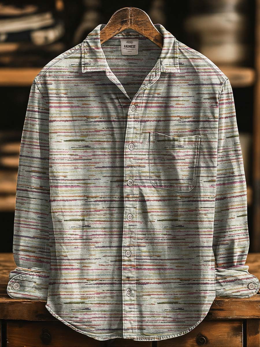Mottled Horizontal Stripe Decorative Pattern Casual Long Sleeve Shirt