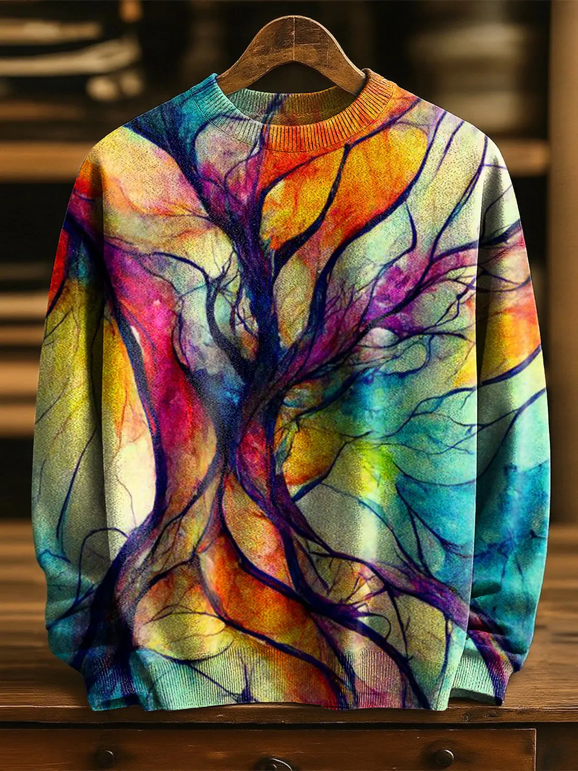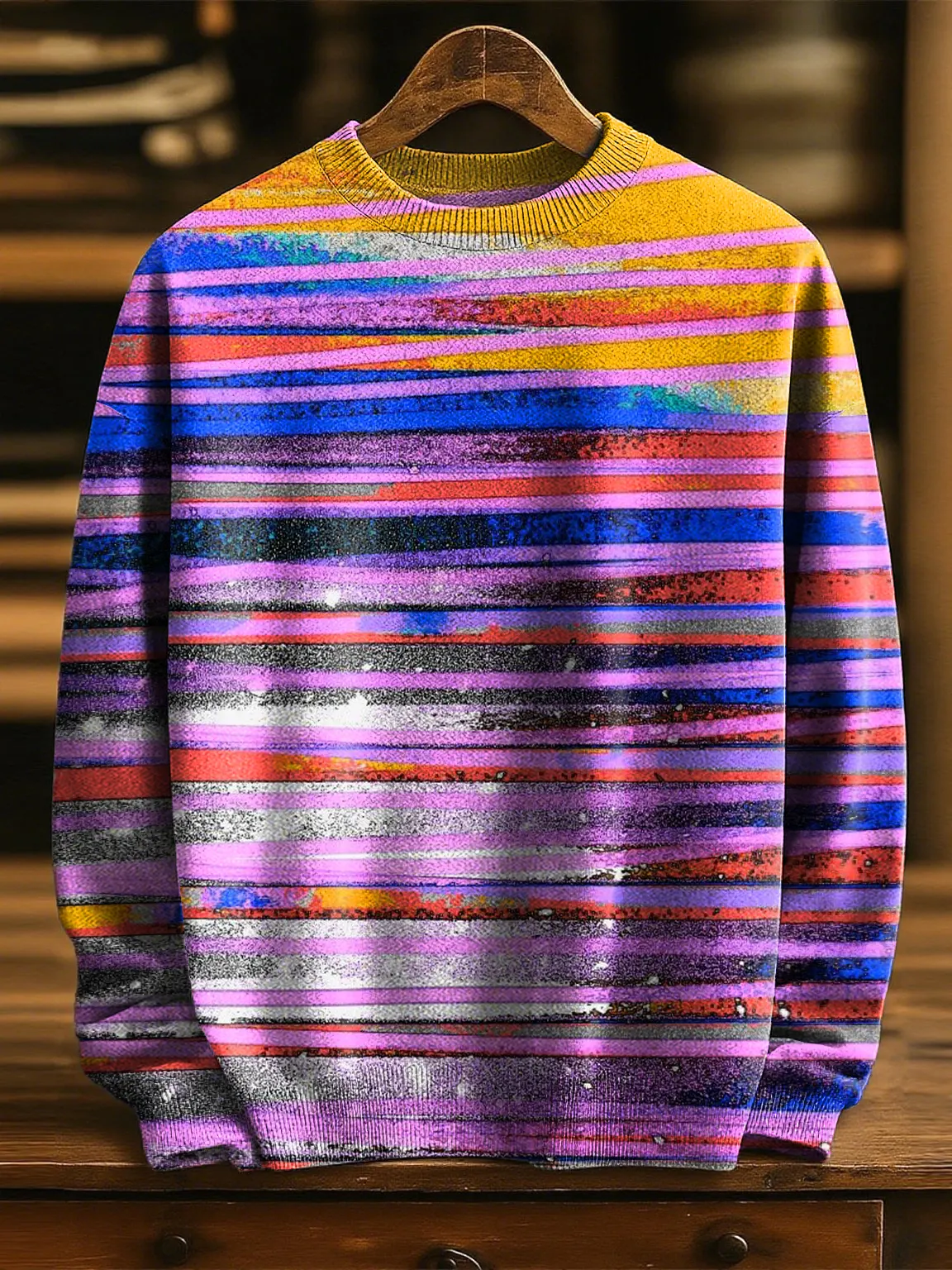 Abstract Horizontal Stripes Print Knit Pullover Sweater