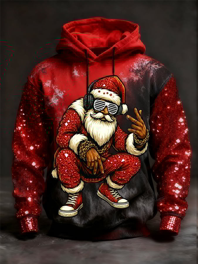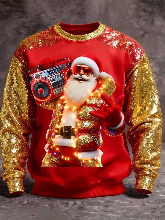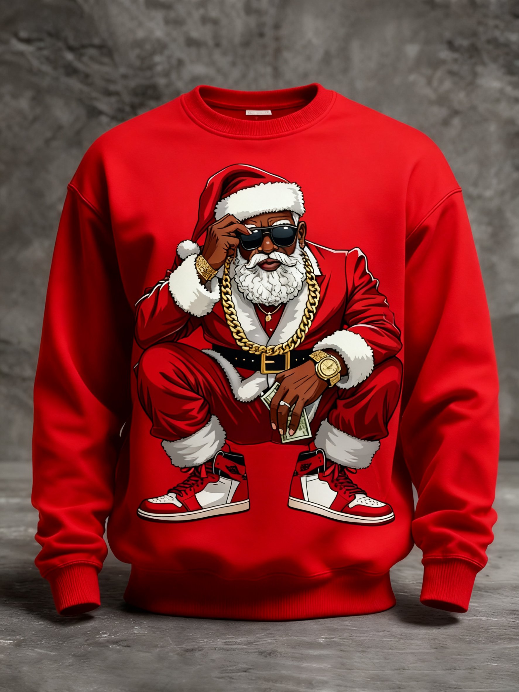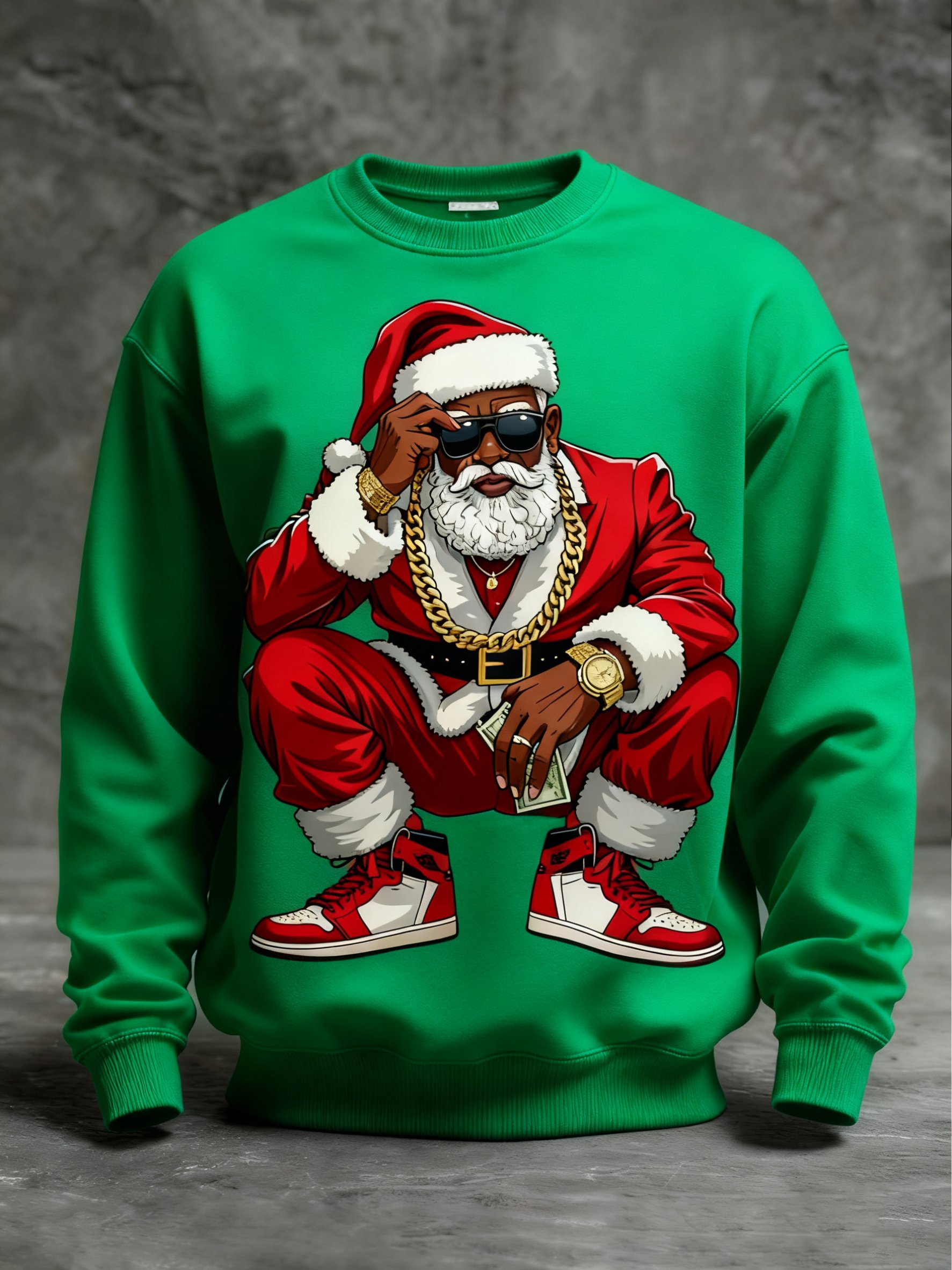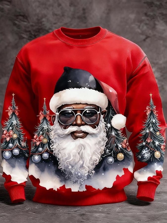 Men's African American Santa Claus Christmas Print Crew Neck Shirt