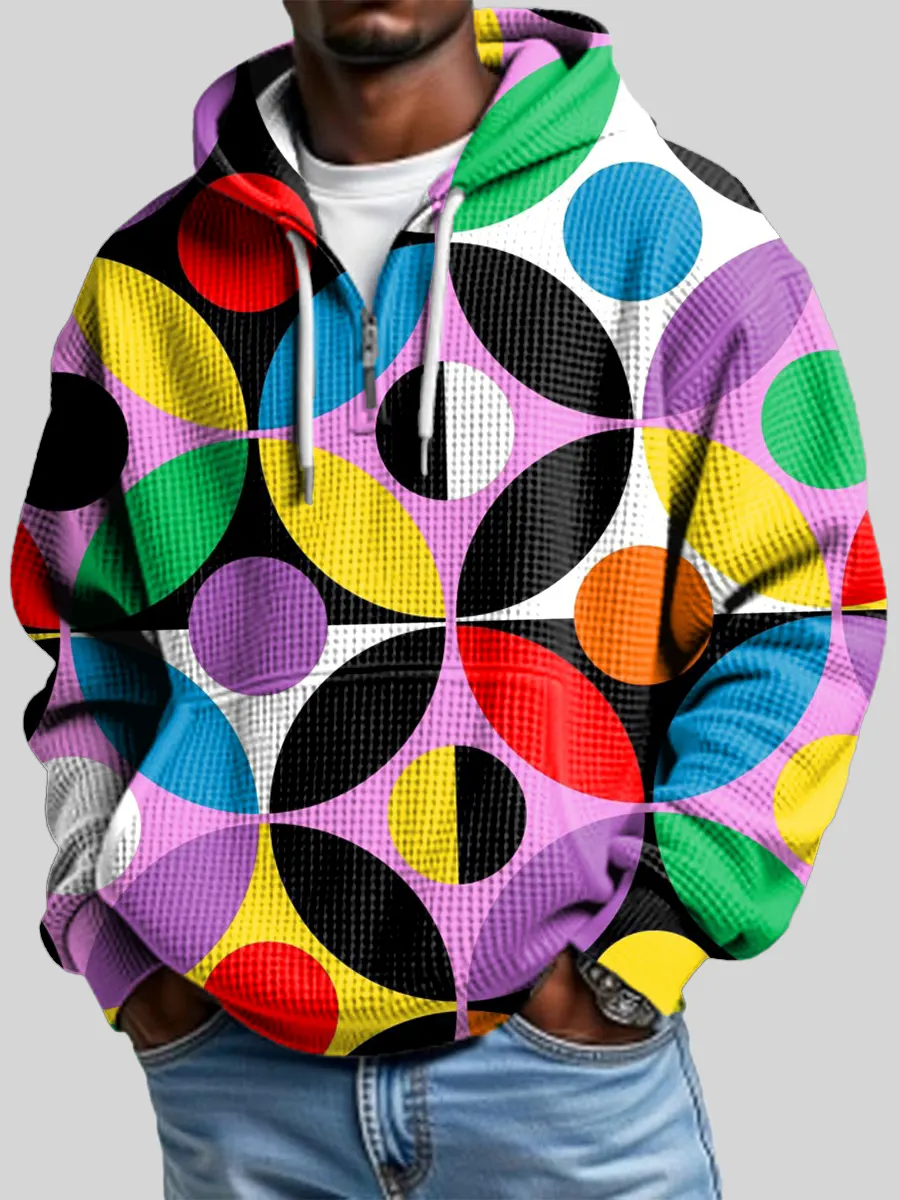 Casual Abstract Art Print Half Zip Waffle Hoodie