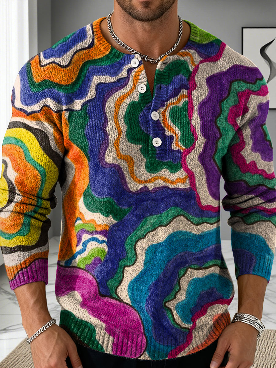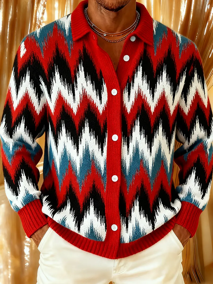 Men's Retro Geometric Abstract Stripe Pattern Art Print Buttoned Cardigan Sweater