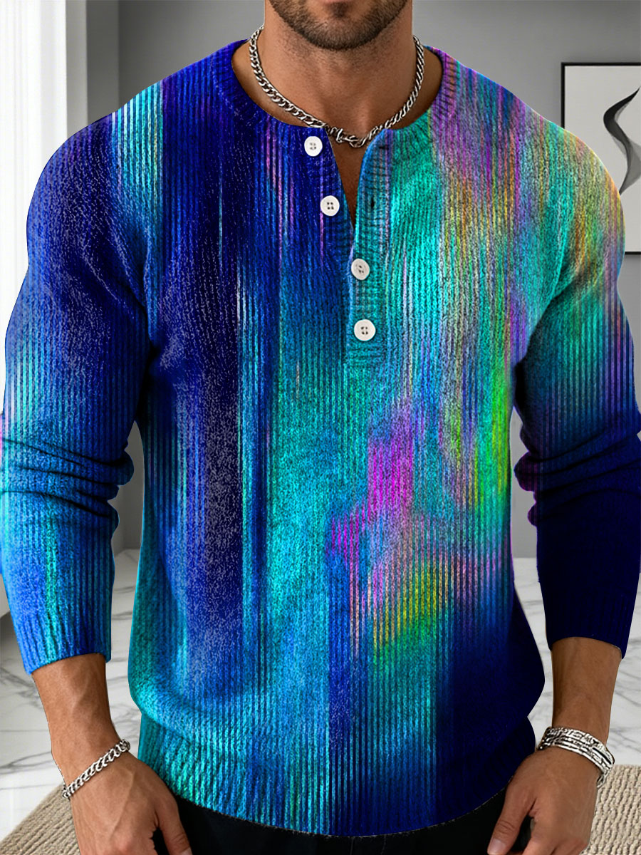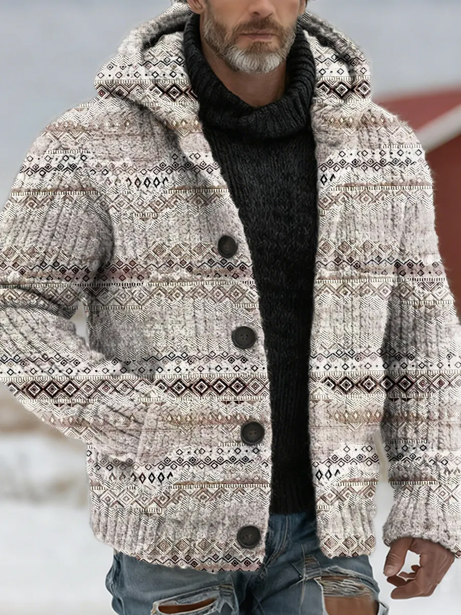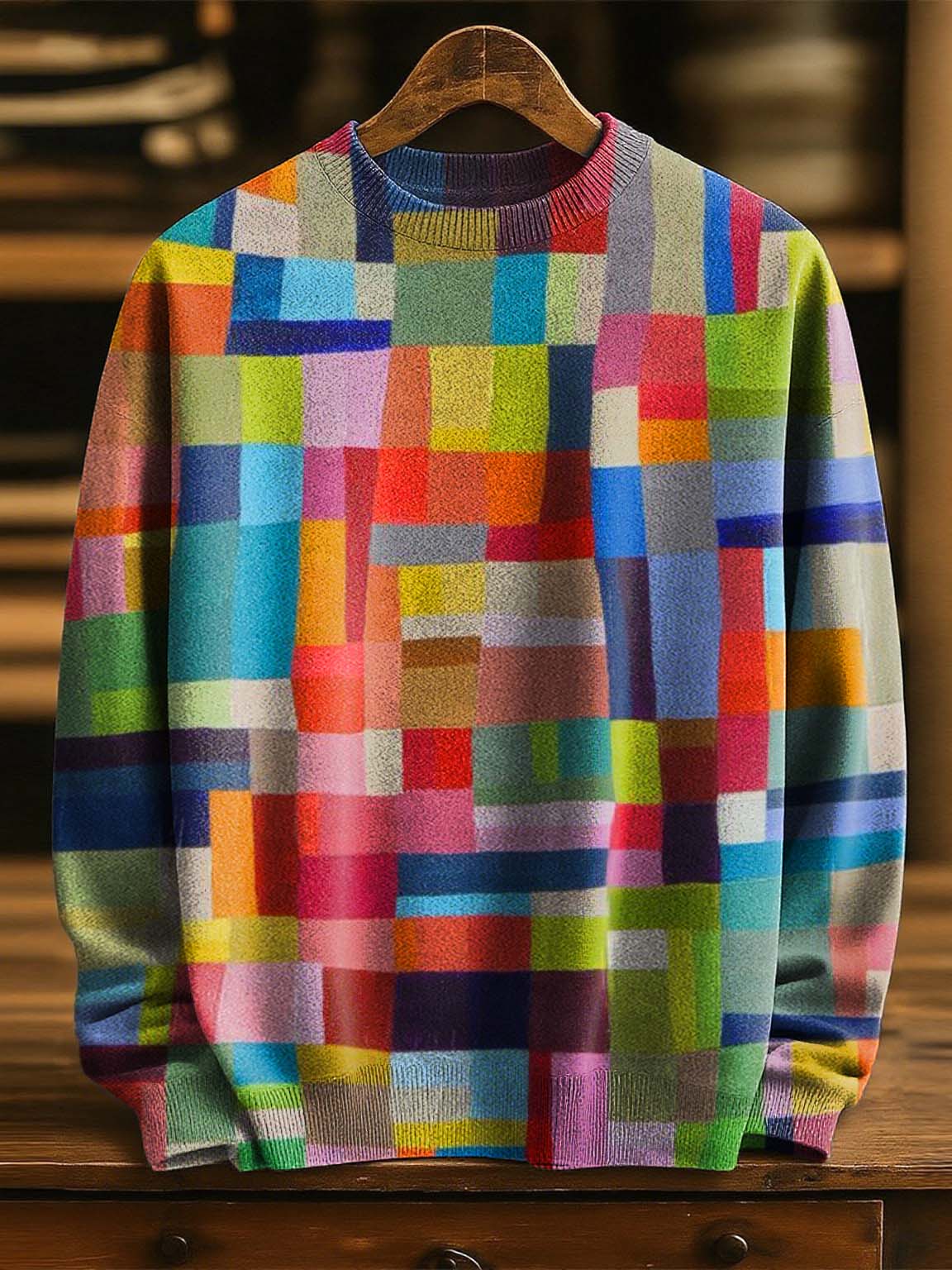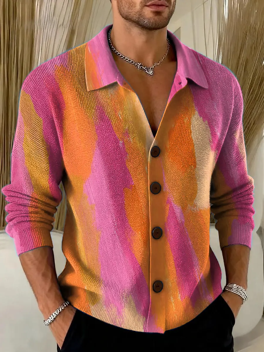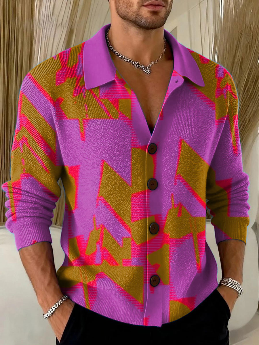 Men's Vintage Geometry Colors Gradient Pattern Art Print Buttoned Cardigan Sweater