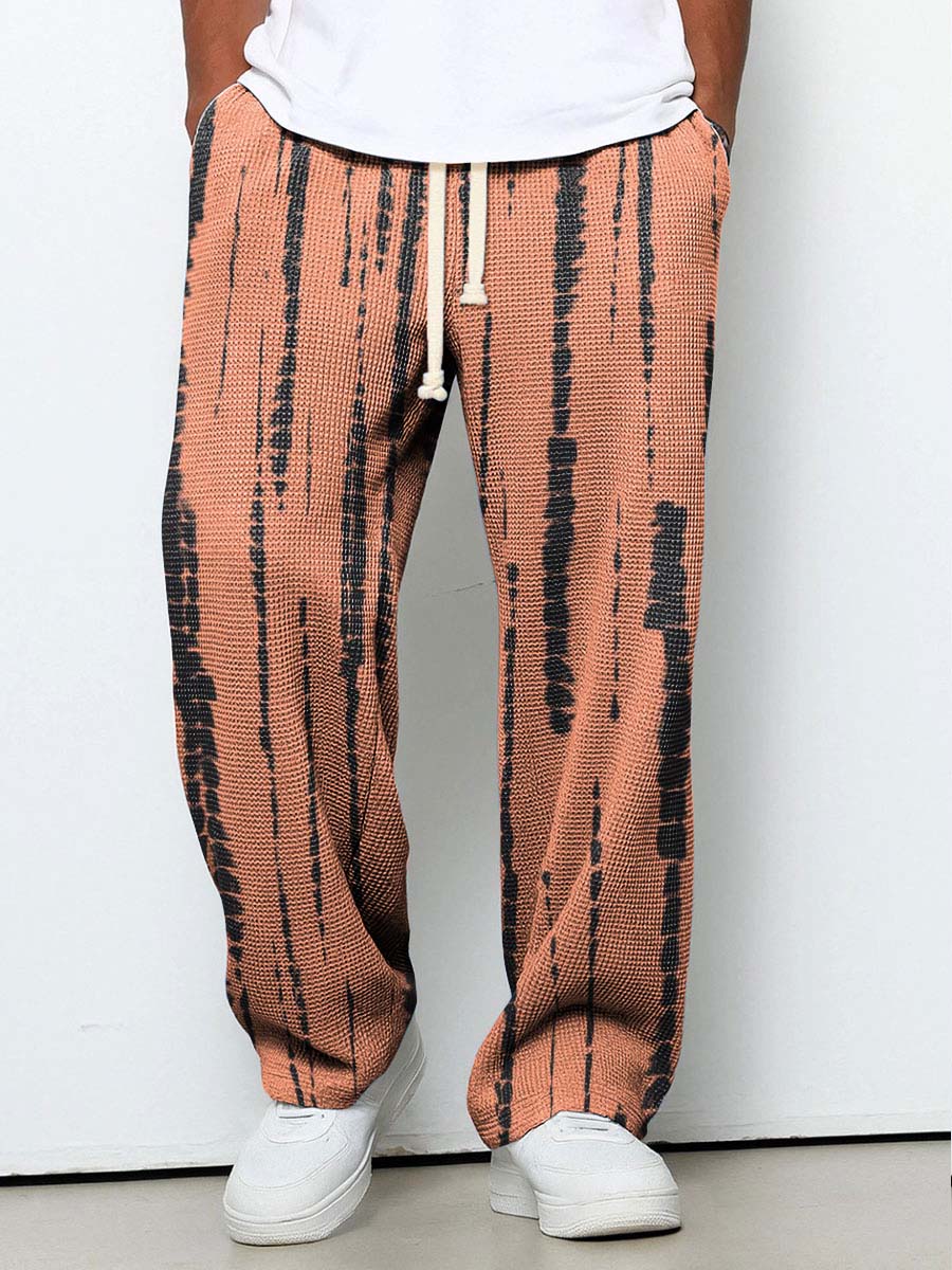 Mottled Vertical Line Decorative Pattern Men's Casual Waffle Pants